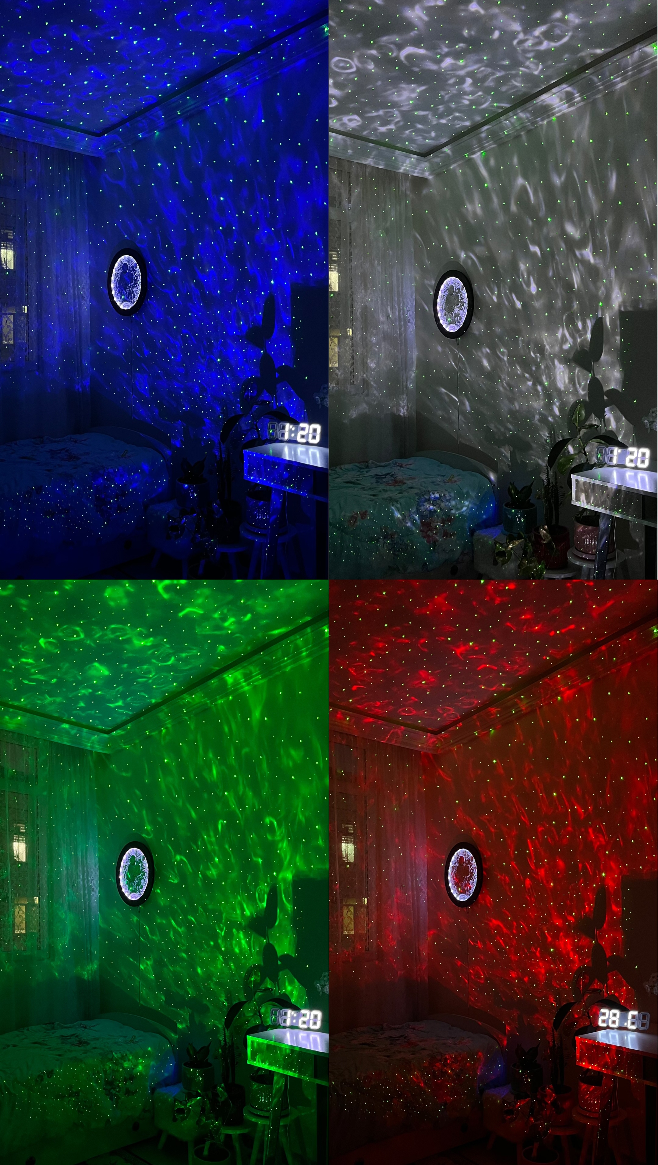 این محصول 2 لیزره هست یعنی هم لیزر ستاره داره که سبز رنگ و ثابته و یک لیزر دیگه هم داره که نورهای رنگی رو به صورت موج آب روی سقف و دیوار میندازه