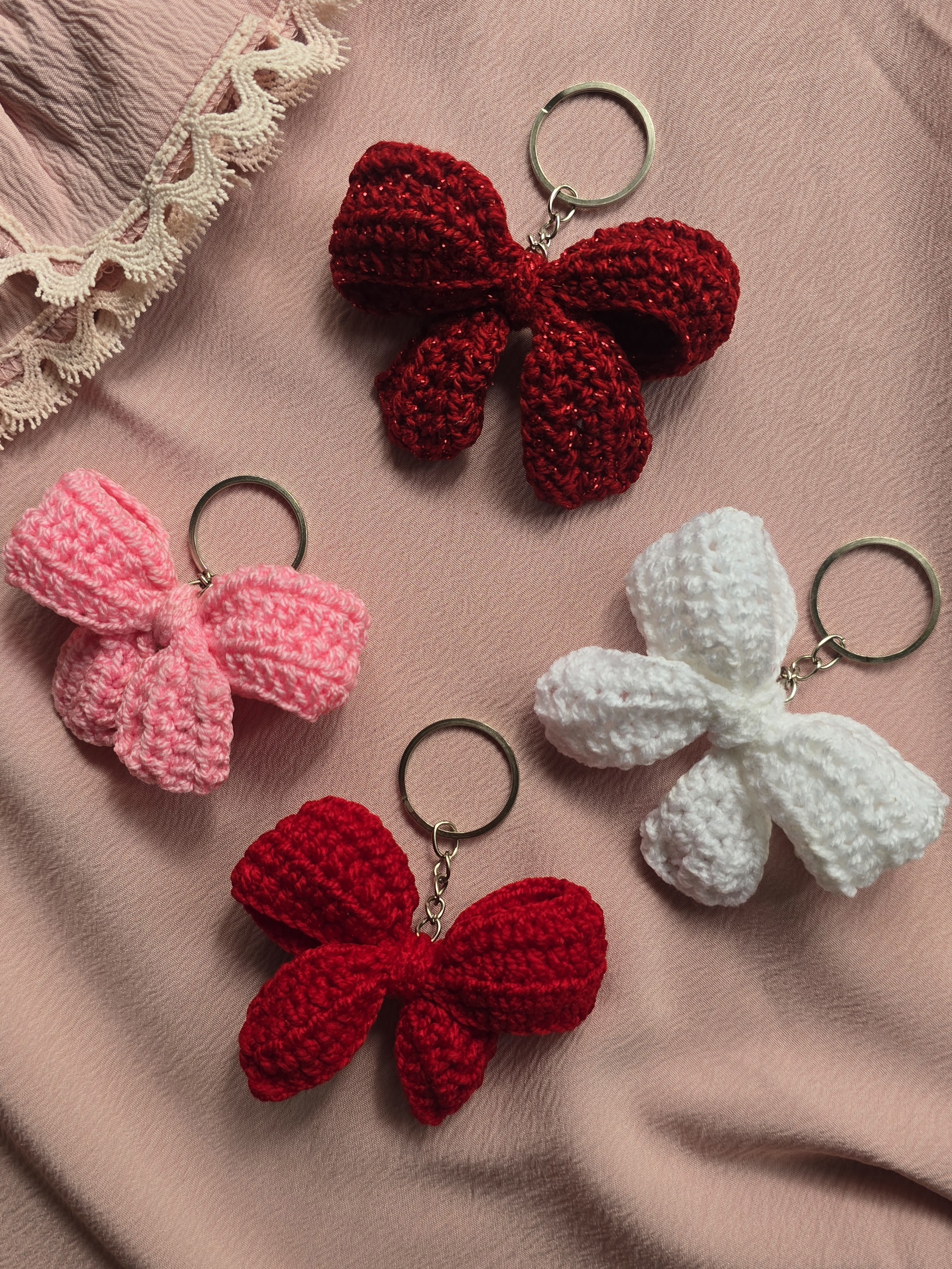 آویز مدل پاپیون بافتنی قرمز سفید صورتی